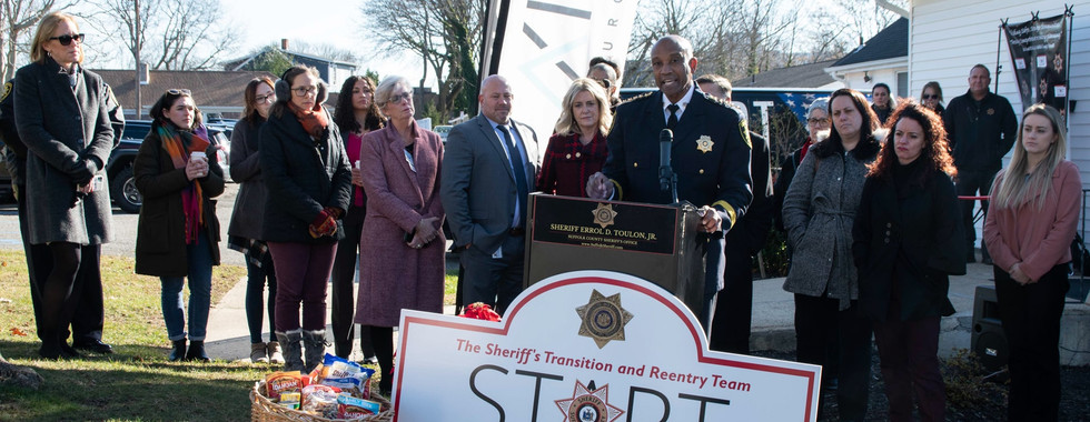 The Sheriff’s Transition and Reentry Team (START) was formed by Sheriff Toulon in 2020 and has since become a nationwide model for reentry services. With 85% of individuals leaving the Suffolk Correctional Facilities remaining in Suffolk County, Sheriff Toulon is committed to making sure they have the tools and resources they need to live productive lives upon reentering our communities. Since launching the program has seen tremendous results, with the recidivism rate of those participating landing at nearly half of the NYS average.